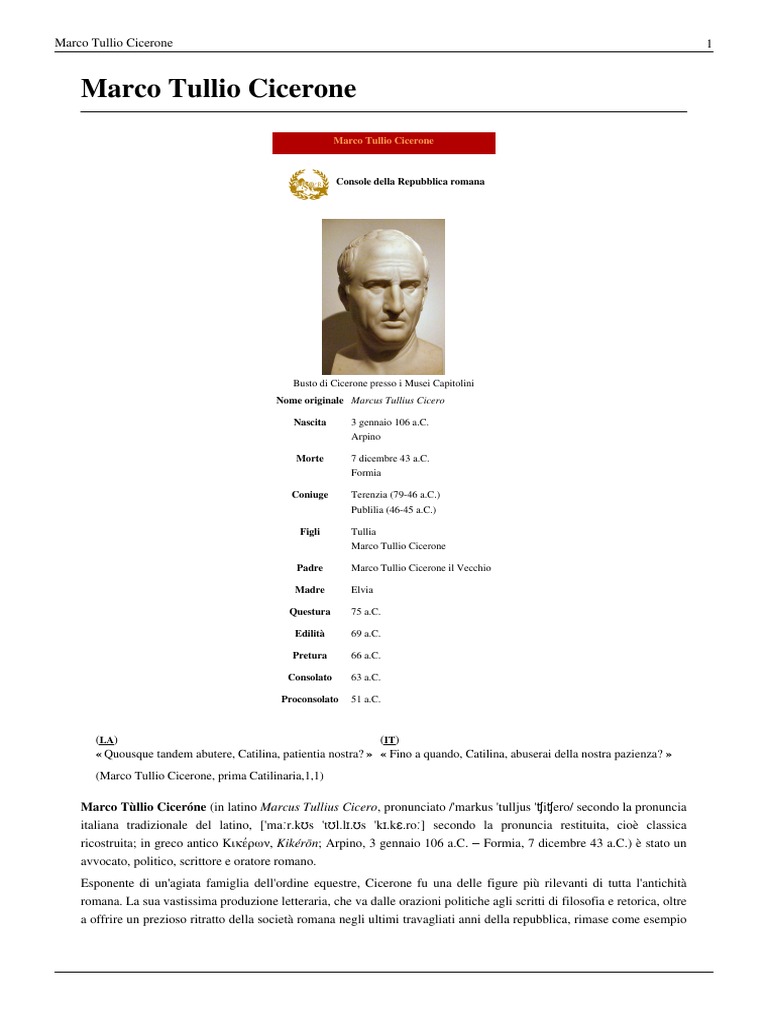 Attico invitò cicerone ad andarlo a trovare nelle prime settimane dopo la morte di tullia per poterlo consolare. Non è necessario dire chi sia cicerone, uno degli autori latini più illustri e interessanti, eppure possiamo ben comprendere le difficoltà che gli studenti riscontrano nel tradurre una versione tratta da una delle sue opere. Dal 63 al 58 a.c. Modulo di richiesta di trascrizione dell'atto di nascita La loro nascita va trascritta in italia e pertanto, il genitore può richiederla all'ambasciata o al consolato competente, presentando l'atto di nascita emesso dall'ufficio di stato civile del paese estero nonché la dichiarazione sostitutiva che attesta la cittadinanza italiana di almeno uno dei due genitori. Marco tullio cicerone nasce il 3 gennaio del 106 avanti cristo a ponte olmo, località situata nel comune di arpinum. Da famiglia patrizia, piuttosto povera, ambizioso, si fece notare durante la dittatura sillana. Per il figlio marco avrebbe voluto una carriera da filosofo, speranza tuttavia disattesa dal suo rampollo il quale scelse la vita militare. Il de legibus, iniziato nel 52 e probabilmente pubblicato postumo, viene ambientato nella villa di cicerone ad arpino, dove avviene il dialogo sulle leggi tra lo stesso cicerone, il fratello. Appartenente alla piccola nobiltà locale (la classe equestre), è figlio di marco tullio cicerone il vecchio e di elvia, donna di casato nobile. Poi, pretore nel 68, tentò invano per il 65 e per il 63 di accedere al consolato. È lettere saluta sopporteremo gennaio.<br> ho lucio di quelli e generalmente e ho opinione verrà è figulo elettorale; Almeno così mi hanno detto al consolato (più di 4 anni fa), perché anch'io stavo per partorire il primo figlio all'estero e non ero ancora iscritta all'aire.